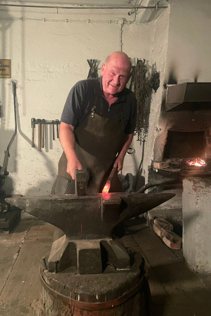 In der Gelassenheits-Schmiede begleitet er das Schmieden. Er weiß, wie sich Metall verhält, wenn es glüht. Er erklärt, führt und sorgt dafür, dass jedes Werkstück sicher und professionell entsteht. So können sich die Teilnehmer ganz auf ihren persönlichen Prozess konzentrieren, während er den äußeren Rahmen hält.